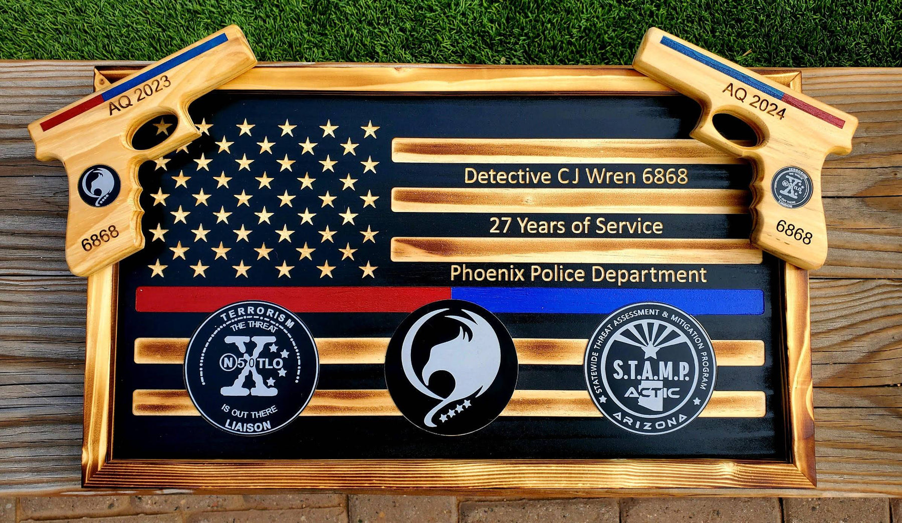 With over 25 years in law enforcement and five years from retirement, I’ve also dedicated myself to serving as a Chaplain and First Responder Life Coach. My mission is to use woodworking and laser engraving as a creative outlet to help fellow first responders process stress and navigate the challenges of their careers.