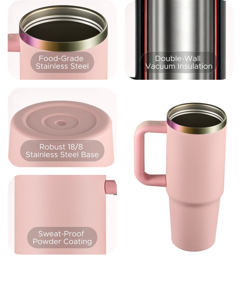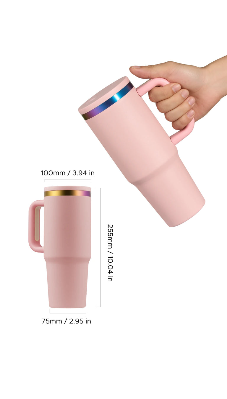 Material: 18/8 Stainless Steel, 201 Stainless Steel, Plastic Color: Black/ Pink/ Cream Tumbler Volume: 40 oz. (1.2 L) Overall Dimensions (ea.): 3.9 x 3.9 x 9.8 in. (10x10x25 cm) Net Weight (ea.): 1 lb. (463 g) |