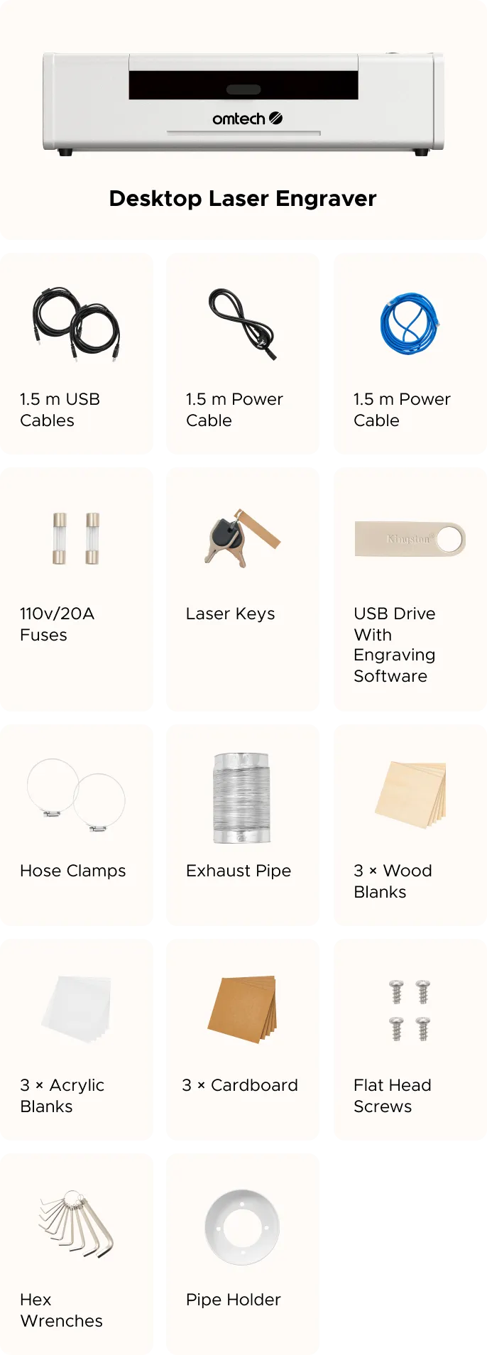 • 3 × Wood, Acrylic, and Cardboard Blanks