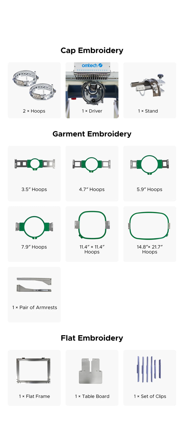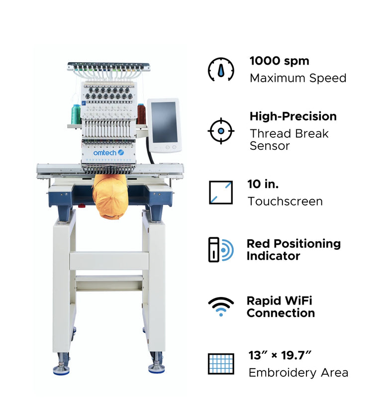 OMTech lets you embroider hats, caps, T-shirts, jackets, bags, hoodies,