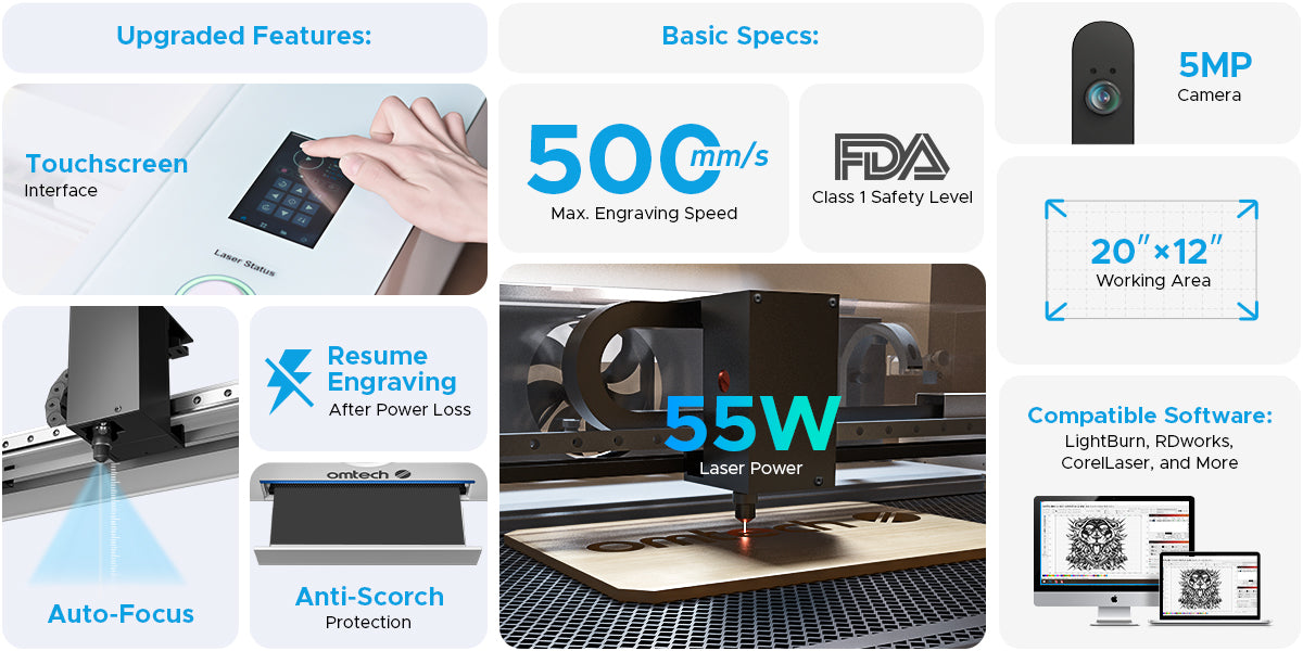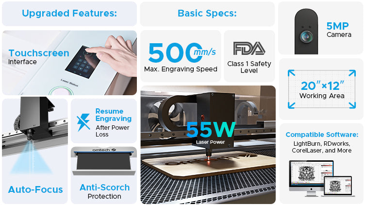 The OMTech Polar+ is specifically designed for laser hobbiests, makers, DIY enthusiasts, and small businesses. The convenience of operation provided by the touchscreen can help you unleash endless creativity and enhance your productivity!